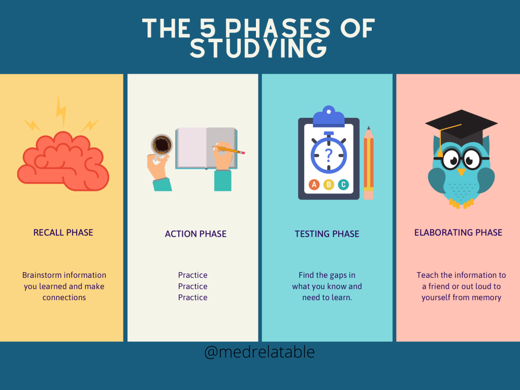 Review phase: The review phase includes going over any final topic or material that you are still struggling with. If you are struggling after the testing phase, seek help from your professor or a classmate that understands the material better than you. Don’t be afraid to use outside resources for your own benefit. They are there for a reason!!!