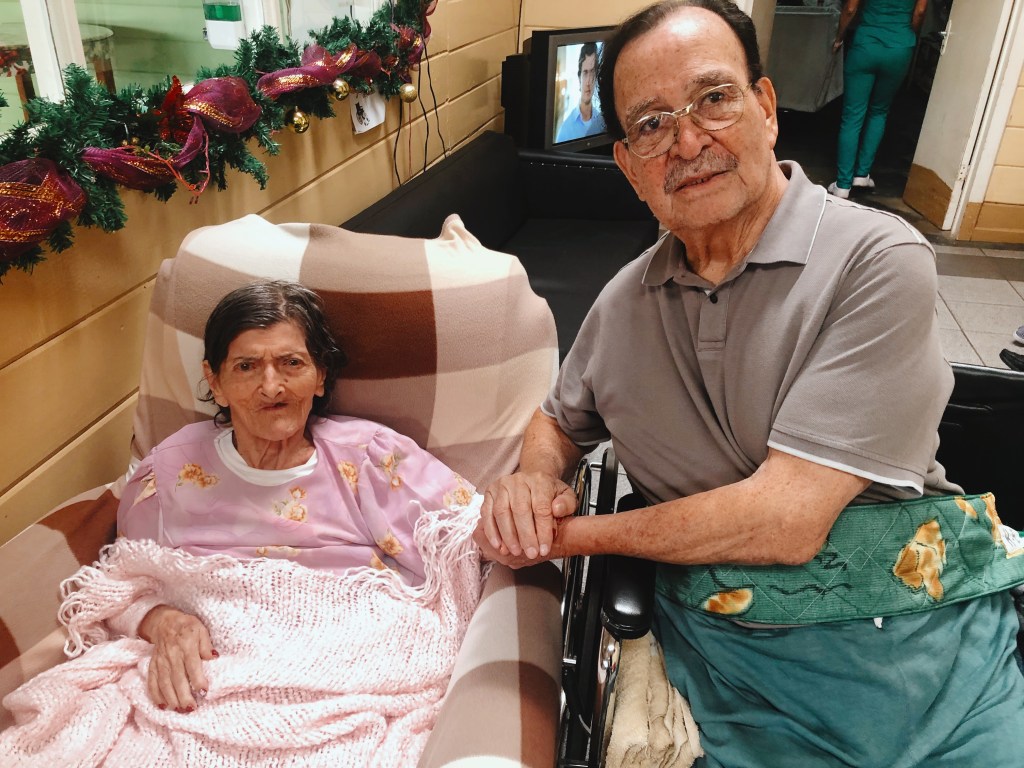 Picture is a husband who moved into the nursing home to be with his wife who has dementia